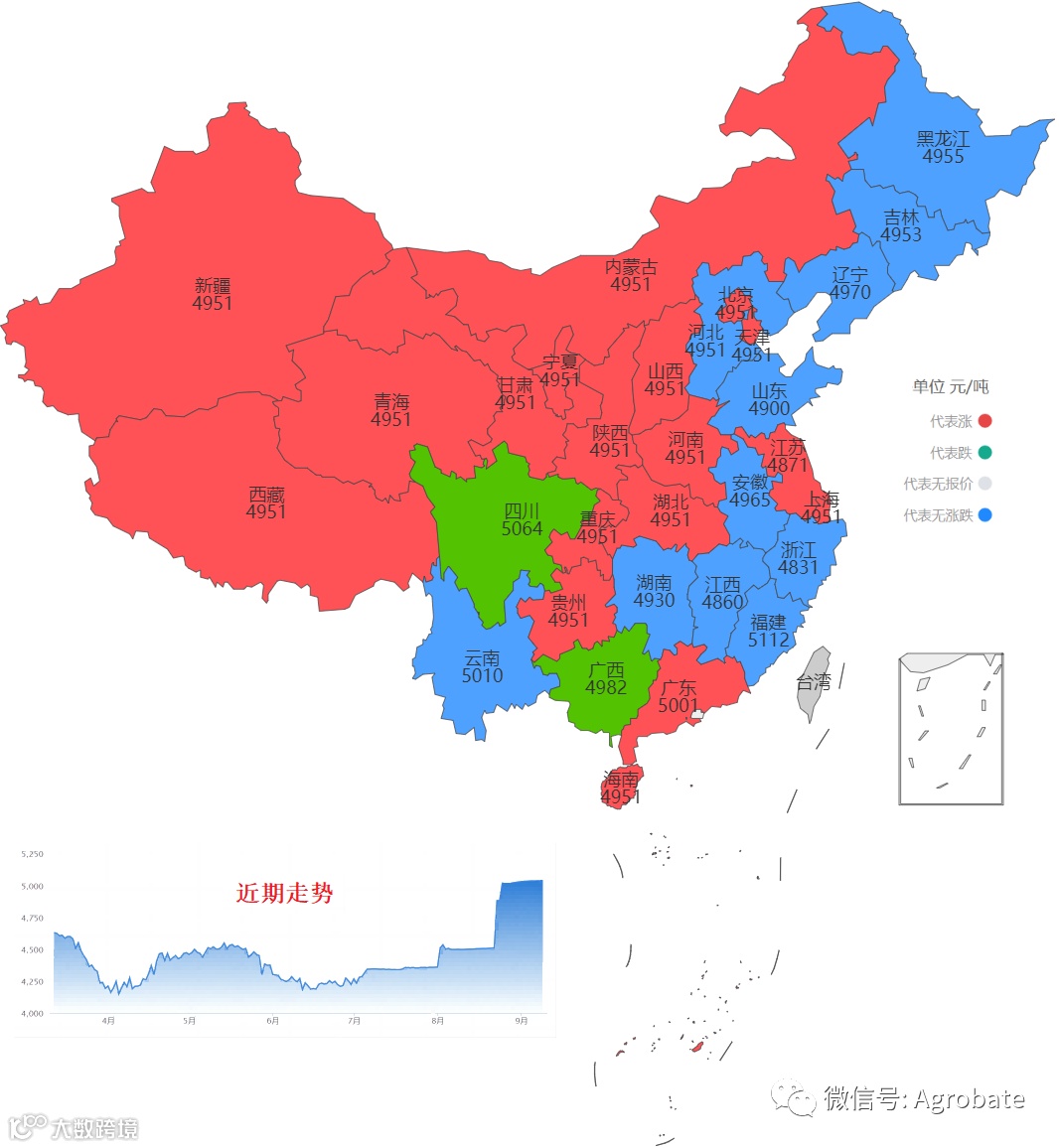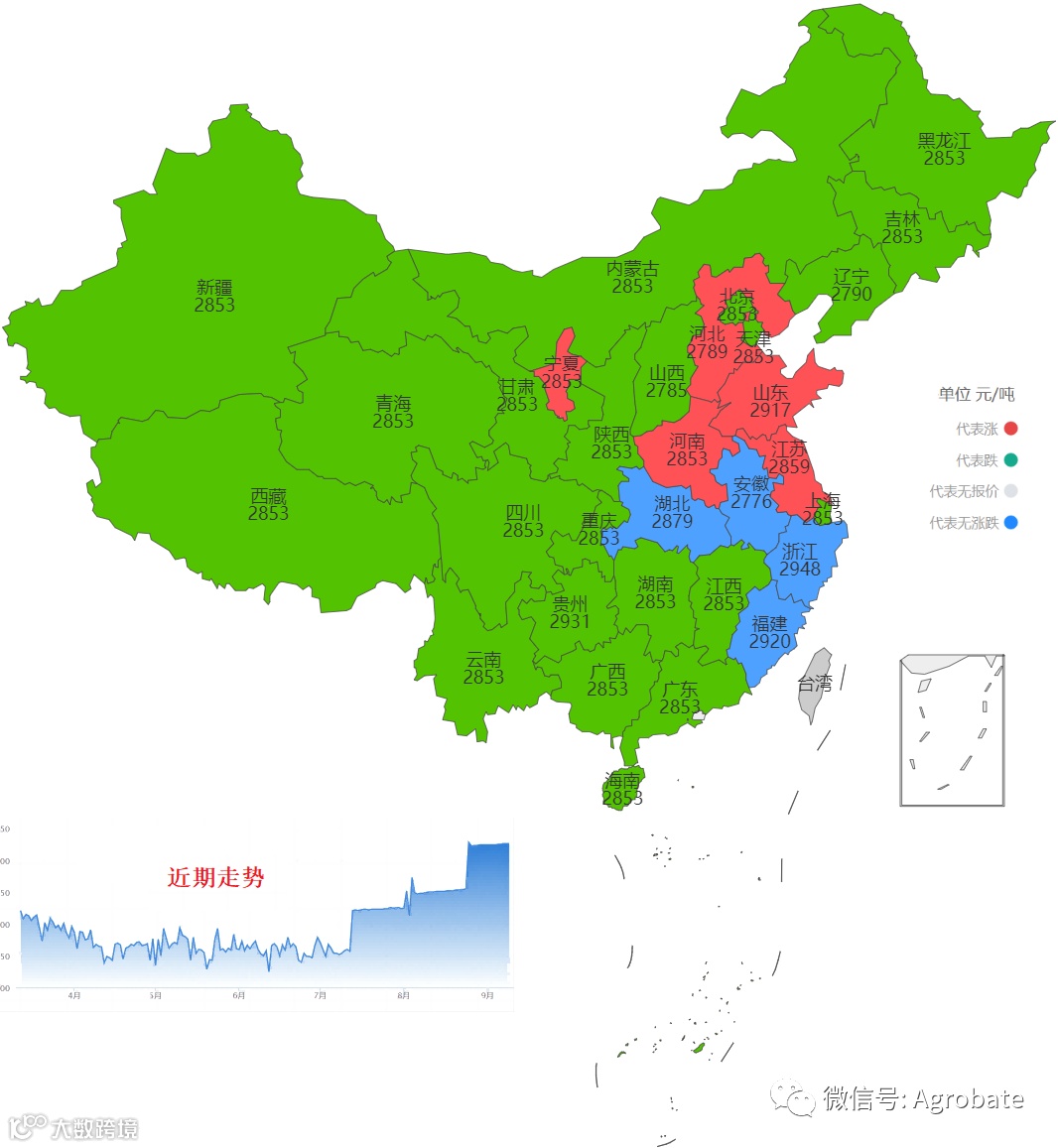 以行政省为区划,采集不同样本点价格信息(来自中国饲料行业信息网、Mysteel、百度爱采购等),计算