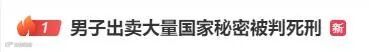 3月19日,话题“男子出卖大量国家秘密被判死刑”一度冲上热搜第一。