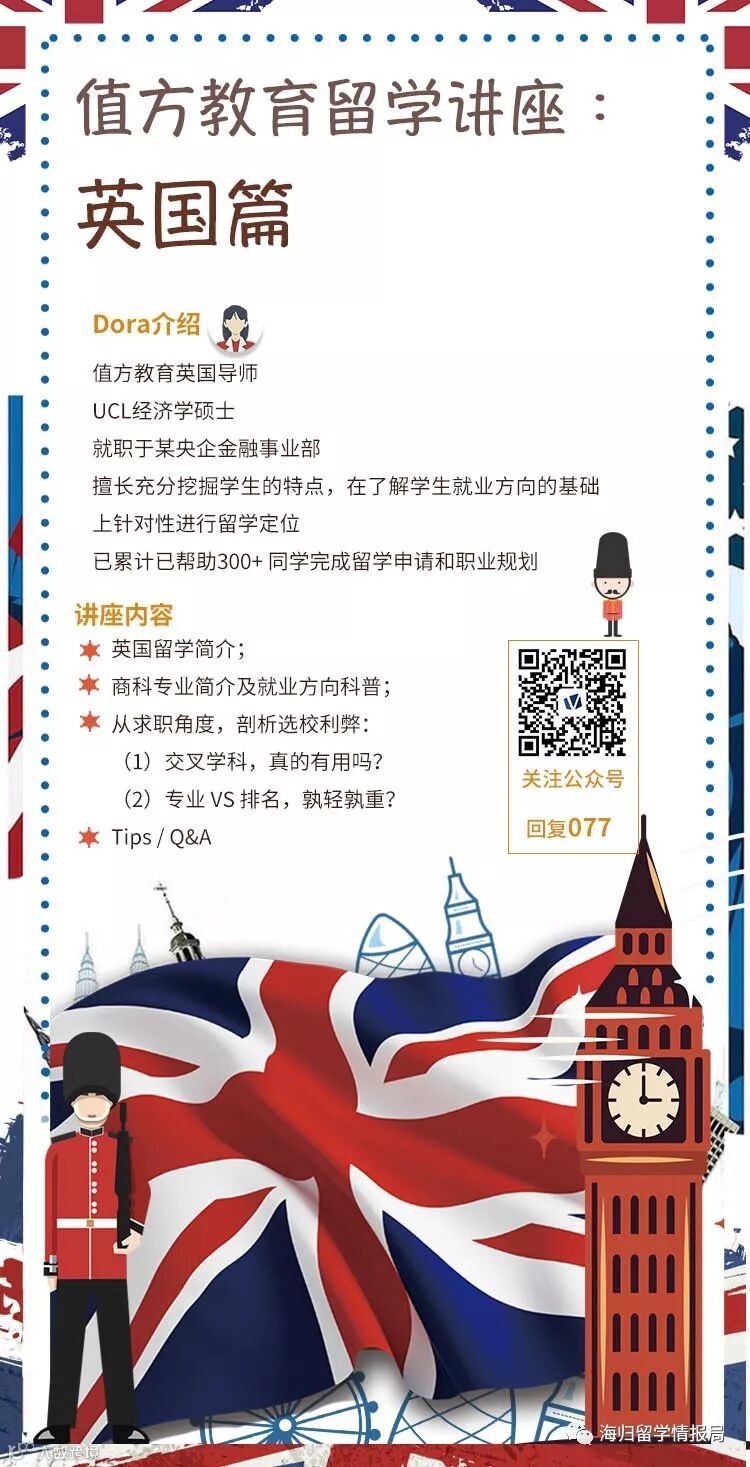 局长请来了我们的Dora学姐,作为我们各国商科留学系列讲座第一期的主讲人,跟大家分享一下关于英国留学和回国求职的十万个为什么。