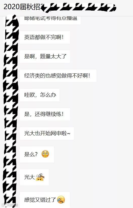 我们建立了专门的光大银行2020届校招笔面试交流群