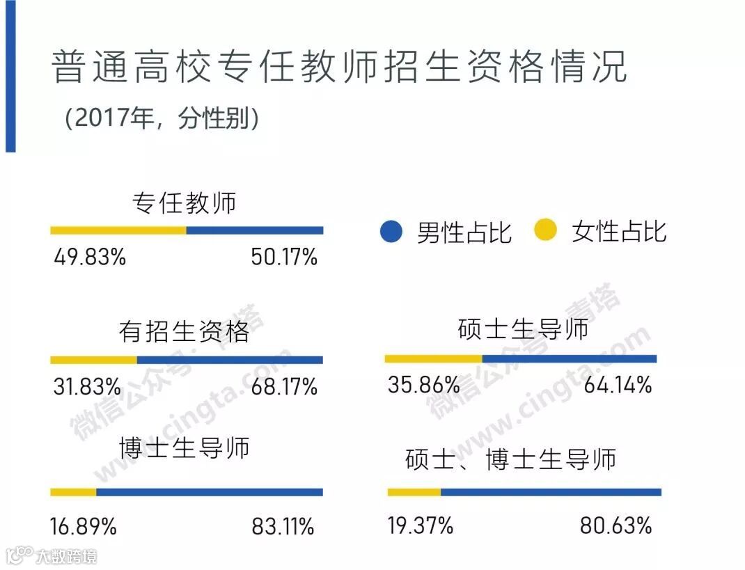 而在拥有研究生招生资格的38.65万高校专任教师中,女性占比却降至了31.83%;
