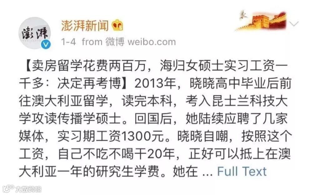留学圈常态:“留学200万,实习工资1300”?