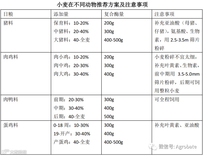 小麦维生素E含量约为玉米的一半,且生物素利用率非常低,配方调整时,需适当补充维生素E和生物素。
