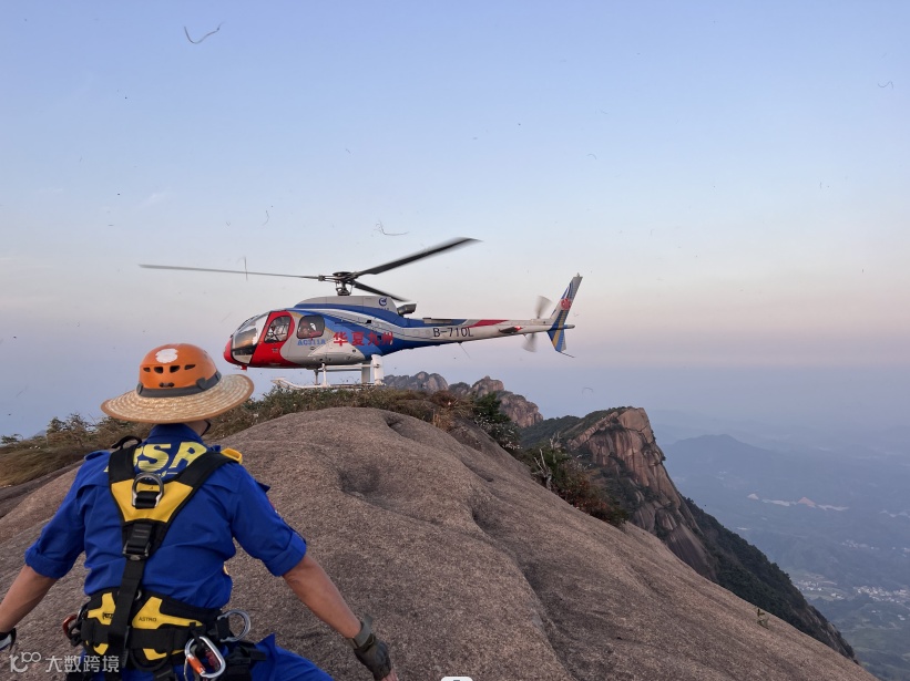 2022年9月24日,1名速降爱好者在江西省上饶灵山风景区意外坠崖。事发地在山顶凹处,伤员意识清醒,胸部以下无知觉,两边均为悬崖峭壁,救援难度极大。若用绳索从山顶崖壁上做伤员转运,无法保障伤员和救援人员的安全,所以急需启动直升机进行航空救援。
