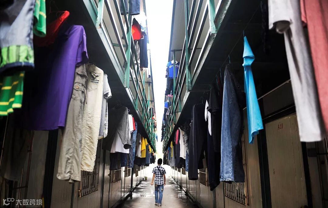2011年9月17日,广州大学城“集装箱宿舍”。每间板房面积不超过15平米,住着6至8人,板房间隔很小,晾满了衣服,无任何消防设施