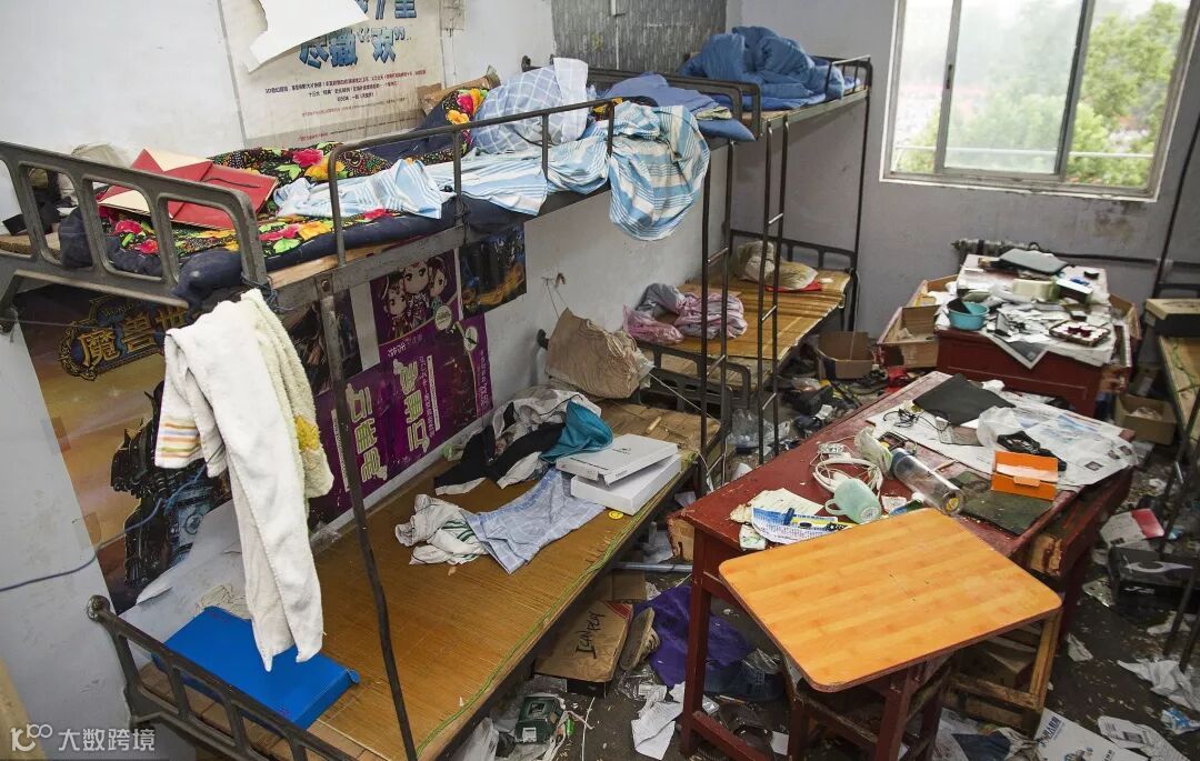 2014年6月25日,郑州市某大学毕业生宿舍内一片狼藉