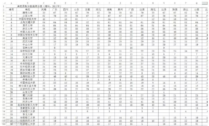 我们选取的这个指标是——录取分数线。采取不同高校,各个省份录取分数线作为基准进行打分,平均,加总,得到一个以客观量化因素为基准的高校排名。