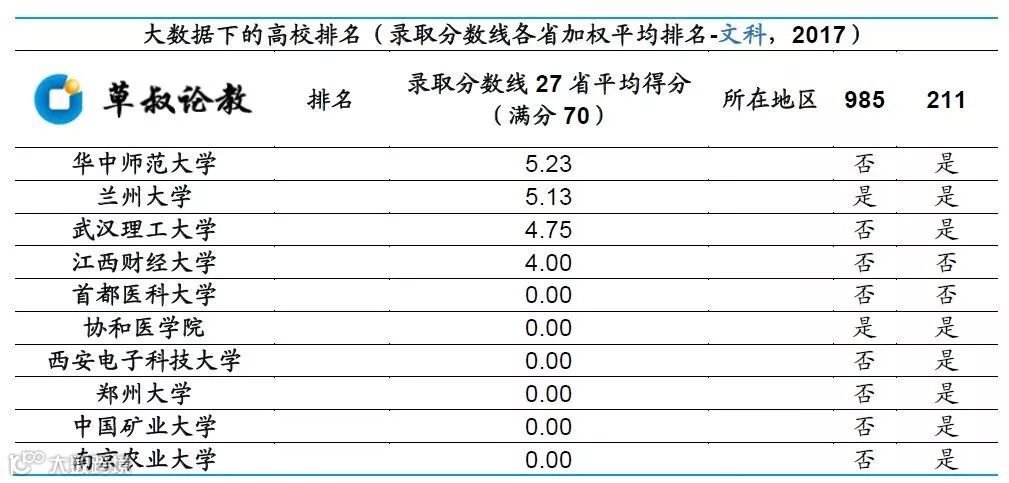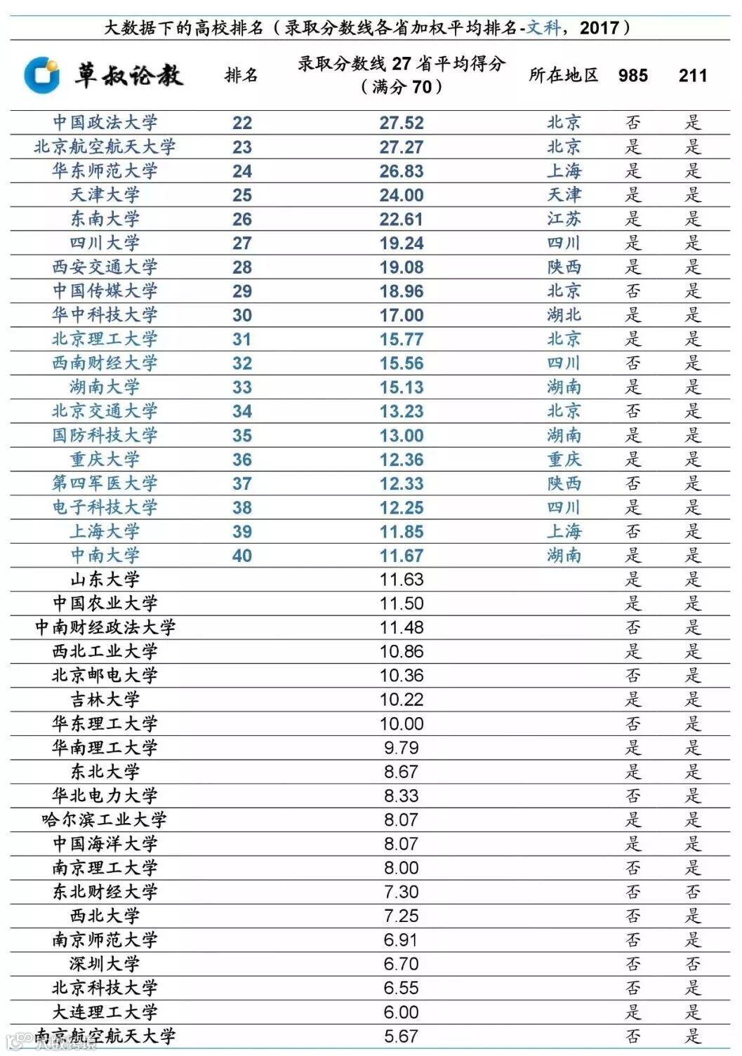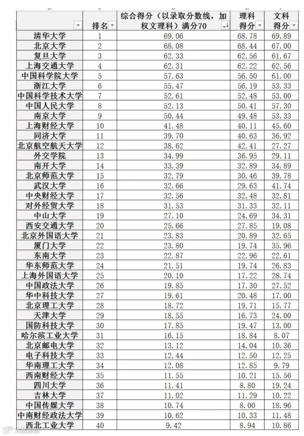 文科篇:前十其余九高校同理科,上财强势杀入前十