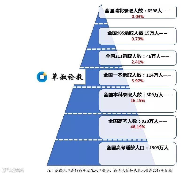 而若是被任何一个985录取,同龄人中,是0.8%的比例,120选1的超级精英。