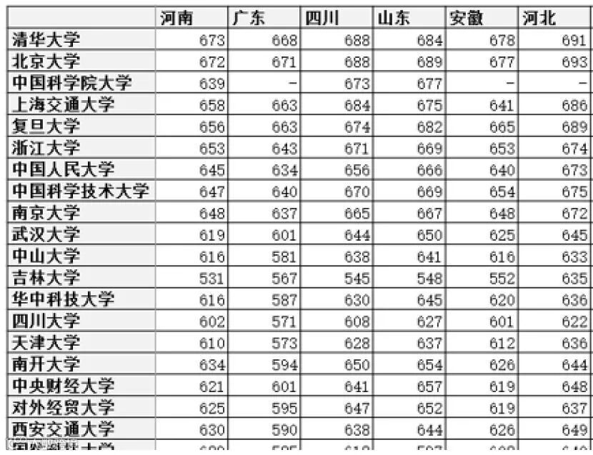 此外,一共只有14个省份有录取分数线排名前40的大学,其余的省份如河南,广西,山西,河北,云南,江西等高考人口大省,没有录取分数线能杀进前40的高校。