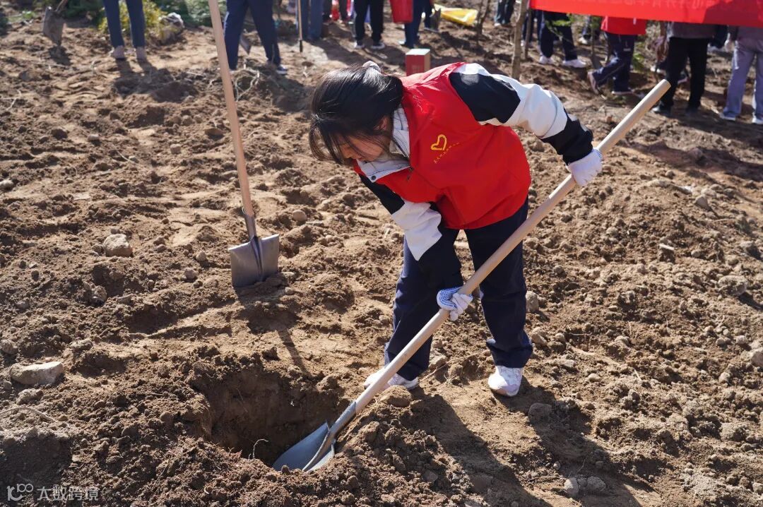 志愿者们到达现场后,有序开展植树活动。在现场工作人员的指导下,志愿者们严格按照标准挖泥铲土、扶苗培土、围堰浇水,大家分工明确,配合默契,干得热火朝天。经过全体志愿者努力,一排排树苗在和煦的春风中落地生根,洋溢着勃勃生机。此次活动,电测团员青年共种植树苗80余株,为两地“青年志愿林”贡献了电测力量。