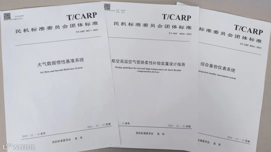 1月1日,由航空工业太航主导,中国商用飞机责任有限公司、航空工业第一飞机设计研究院、中航西飞民用飞机有限责任公司、北京耐威时代科技有限公司联合编制的《大气数据惯性基准系统》《航空高温空气管路柔性补偿装置设计指南》《综合备份仪表系统》三项CARP团体标准获上海市航空学会批准,正式发布实施。三项团体标准将标准研制与产业推广有效融合,从三个维度对民用航空产品研发提供了标准指导。三项团体标准的发布推动了行业技术进步,为民机适航领域作出太航贡献。