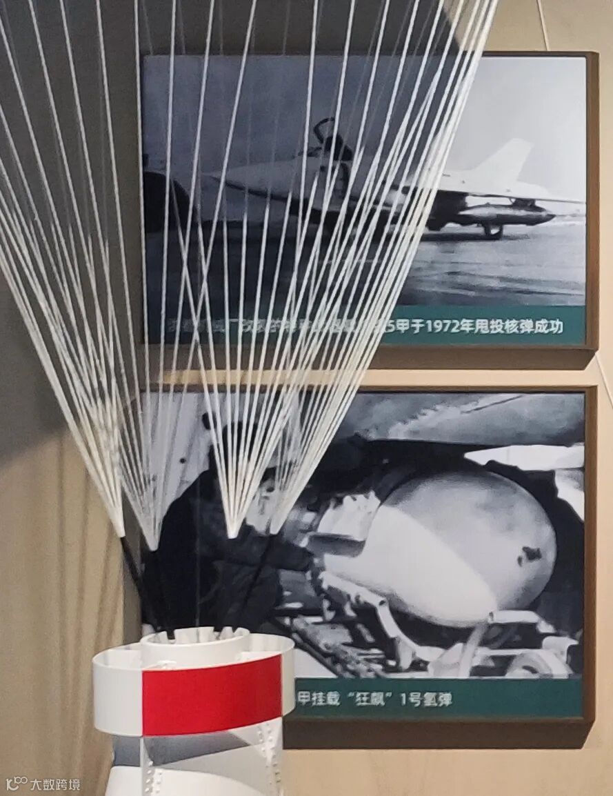 先看照片右边的展陈。这部分大家很熟悉了,在“航史馆‘挖’宝”系列的第二篇,轰6甲空投原子弹爆炸成功。