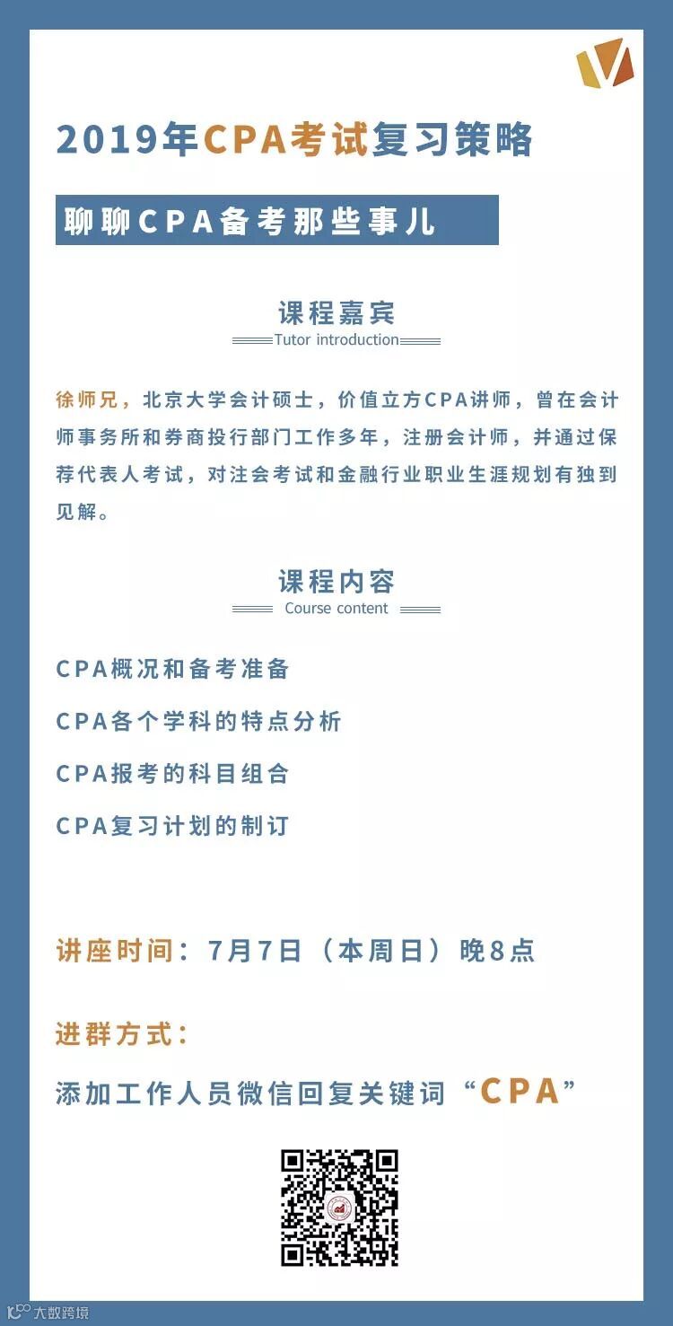 本周日(7月7日),我们邀请到一位优秀的师兄分享备考CPA的那些事儿,晚八点开讲欢迎添加小助手进群听讲。