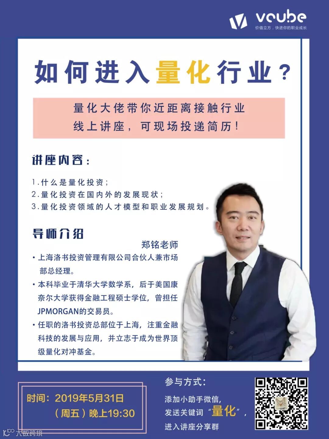 郑先生在本次分享会中将会以其个人独特的视角以及经验来分享其对量化投资在中国市场的现状以及未来发展趋势的看法。他也会对准备进入这个行业的学生提供职业发展方面的建议。