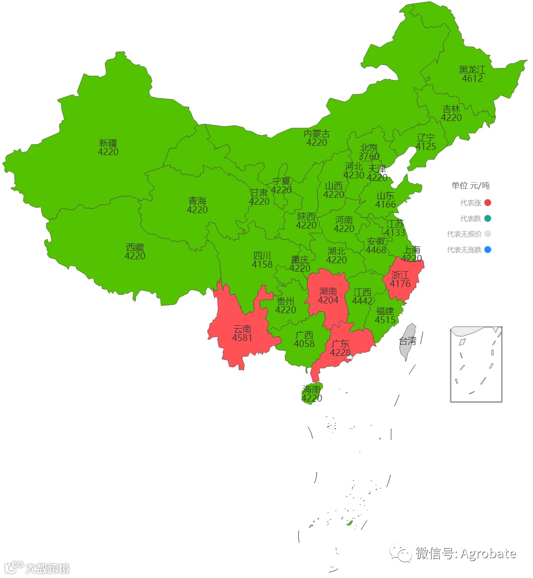 导读:玉米豆粕大宗原料全国价格地图。豆粕玉米各地采购决策信息参考。按行政省平均价格。