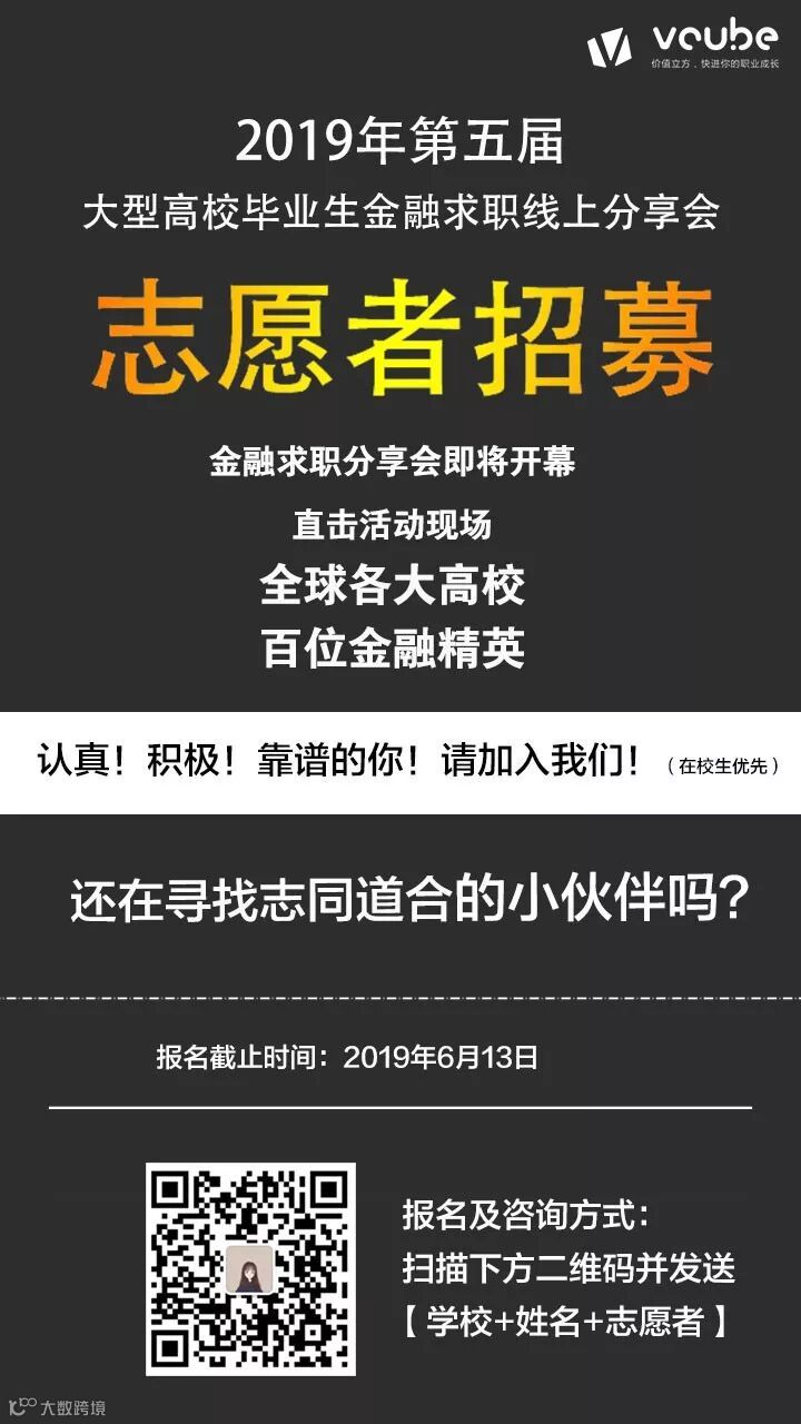 导读:第五届高校毕业生金融求职分享会招募志愿者啦!