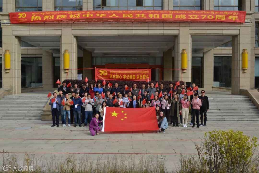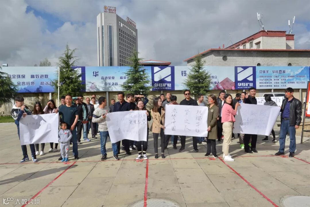 脸颊印上国旗,手中挥着国旗,抬头仰望国旗,心中装着祖国,嘴里高喊“华钰矿业祝祖国母亲生日快乐,繁荣昌盛,我爱你,中国”。这是9月30日下午三时,西藏华钰矿业大门口组织拍摄制作公司快闪视频 “我和我的祖国”现场的一幕。