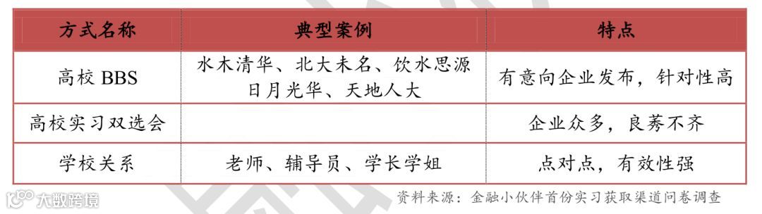 各大高校金融学子寻找金融行业实习,信息获取渠道主要为以下几种:校园渠道途径、传统线上渠道、新媒体公众号和微信群及推荐渠道等。