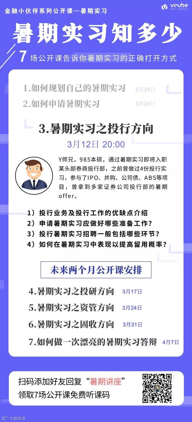 金融小伙伴【2019年暑期实习】免费系列公开课【第三期】即将开讲,3月12日(周二)晚8点不见不散!