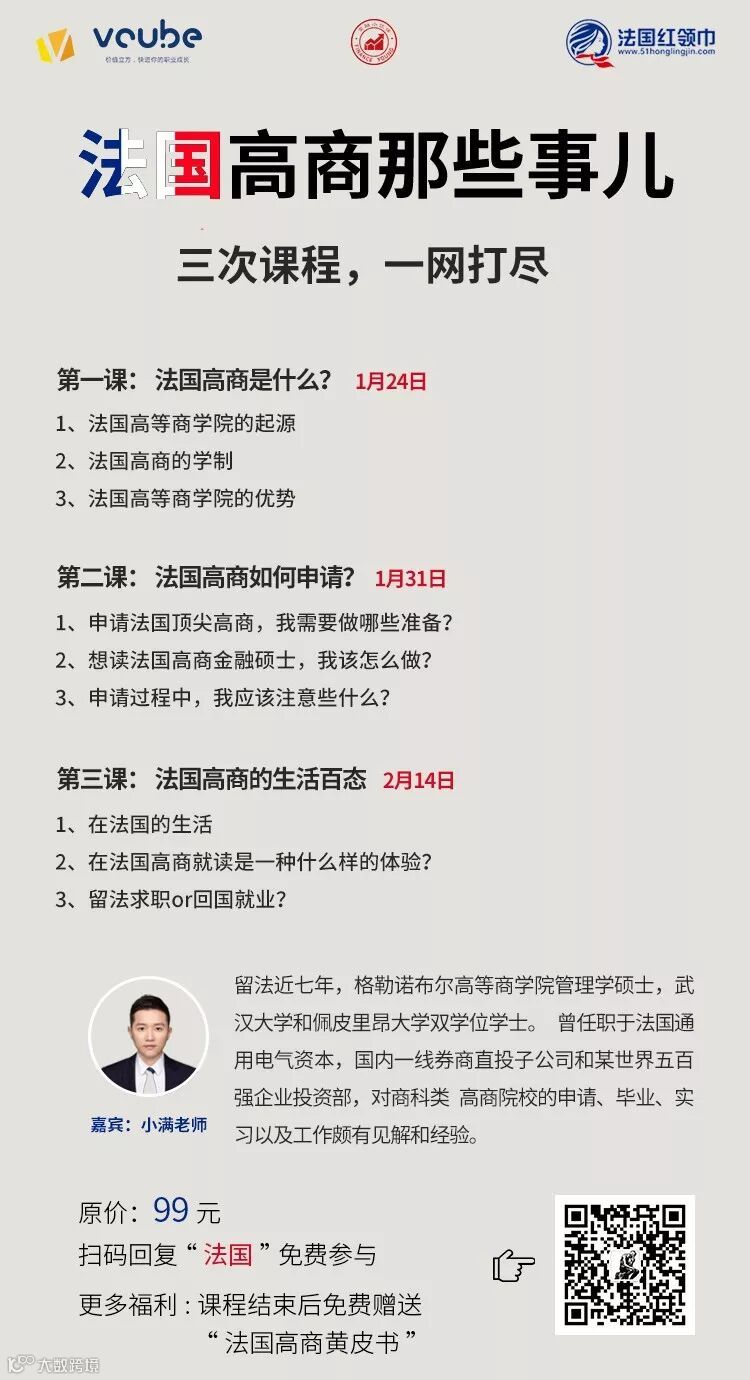 欢迎对法国留学感兴趣的小伙伴报名收听,报名的同学可在课程结束后免费领取【法国高商黄皮书】哦!