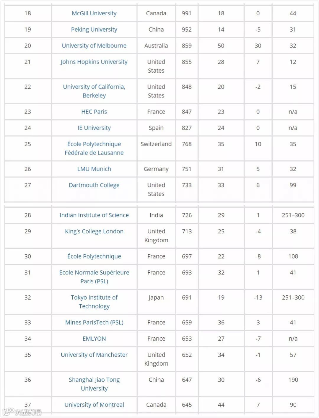 排名中很多往年没有看到的大学今年也出现了,比如杜伦大学,伯明翰大学。比较糟糕的是,UCL今年从49名暴跌到了第76名。