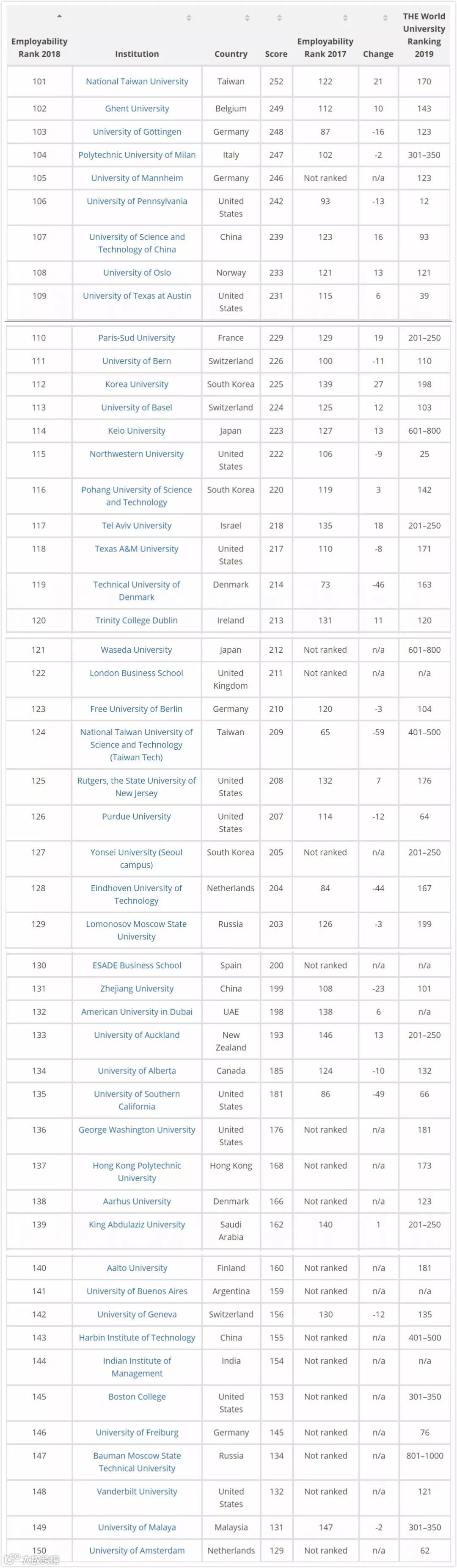 泰晤士高等教育报Times Higher Education发表了2018年的全球大学就业能力排行榜,如果你不想一毕业就失业的话,那就赶快来看看这个排名吧!