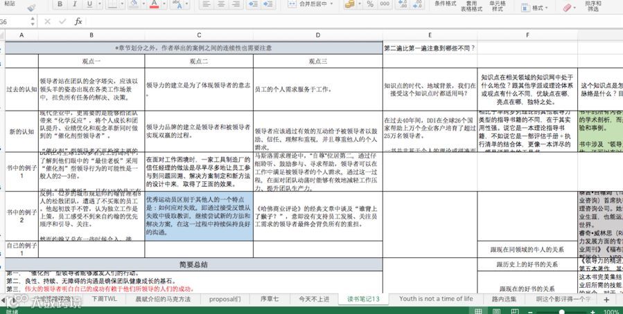 小到月度总结,看专业书籍的摘抄、心得,大到下季度的目标,充电培训班的选择。一直到现在,换电脑换手机我第一件事一定是更新保存这份表格。手可以分,表格不能丢。