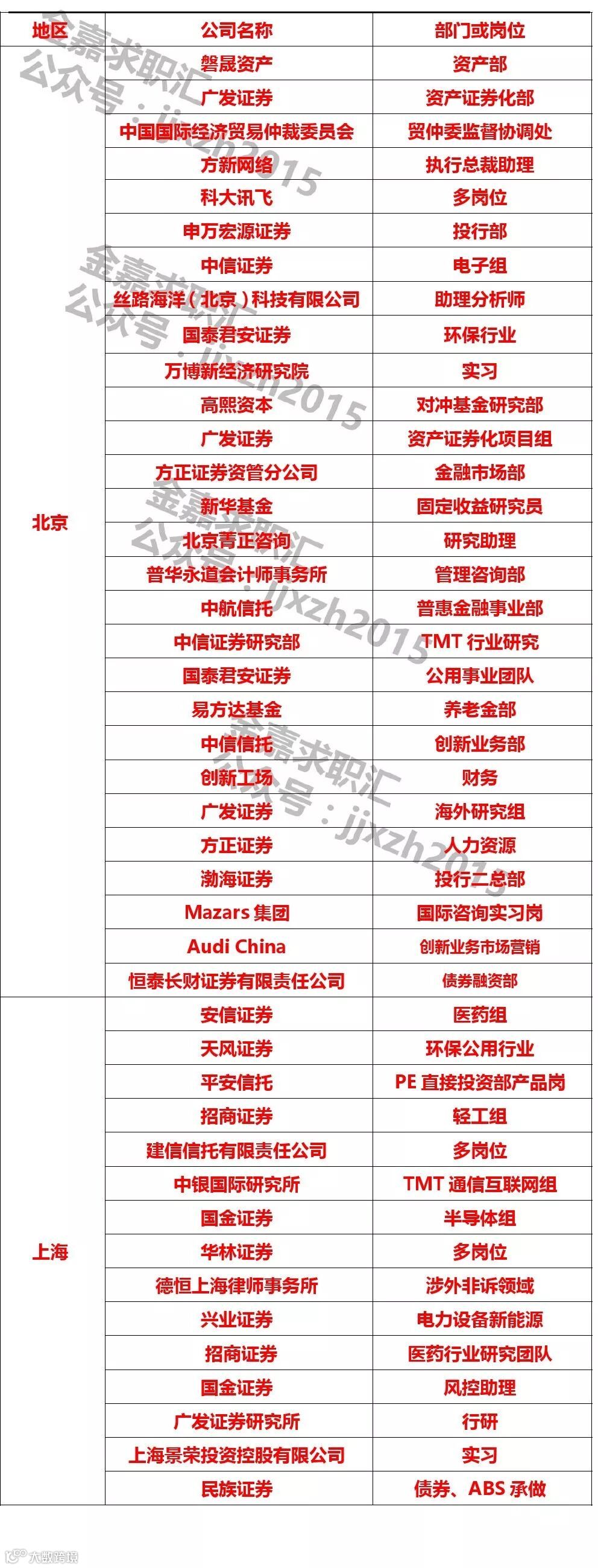 5、有券商投行或资管、律师事务所、信托公司相关实习经历优先考虑;