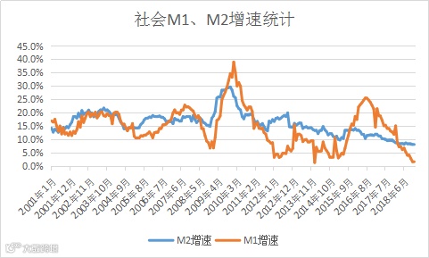 然而从上表我们可以到,2018年M1增速出现了急速下滑,且没有因为任何措施得到制止,最终年末以1.452%的成绩收官。