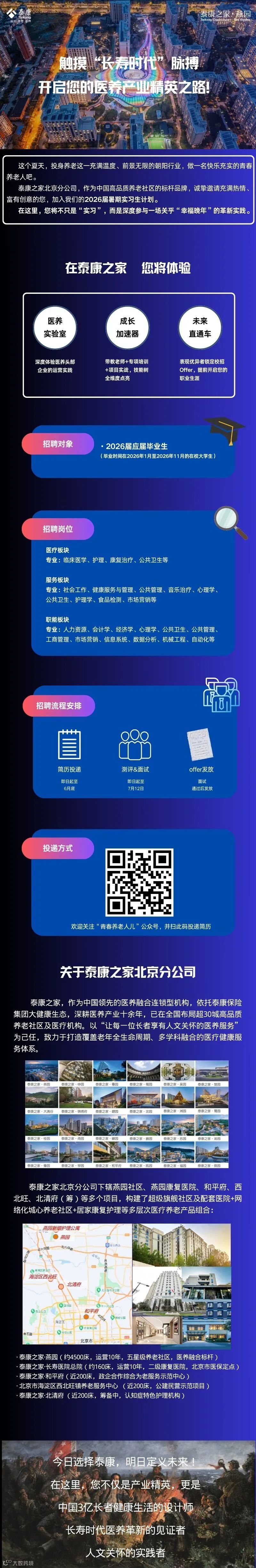 导读:泰康之家北京分公司2026届暑期实习生计划开始啦!