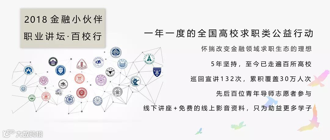 导读:五年公益,百校巡讲坚持服务金融学子,打造新型金融求职四位一体,三大梯队金融小伙伴独家金融学子成长培养模型20