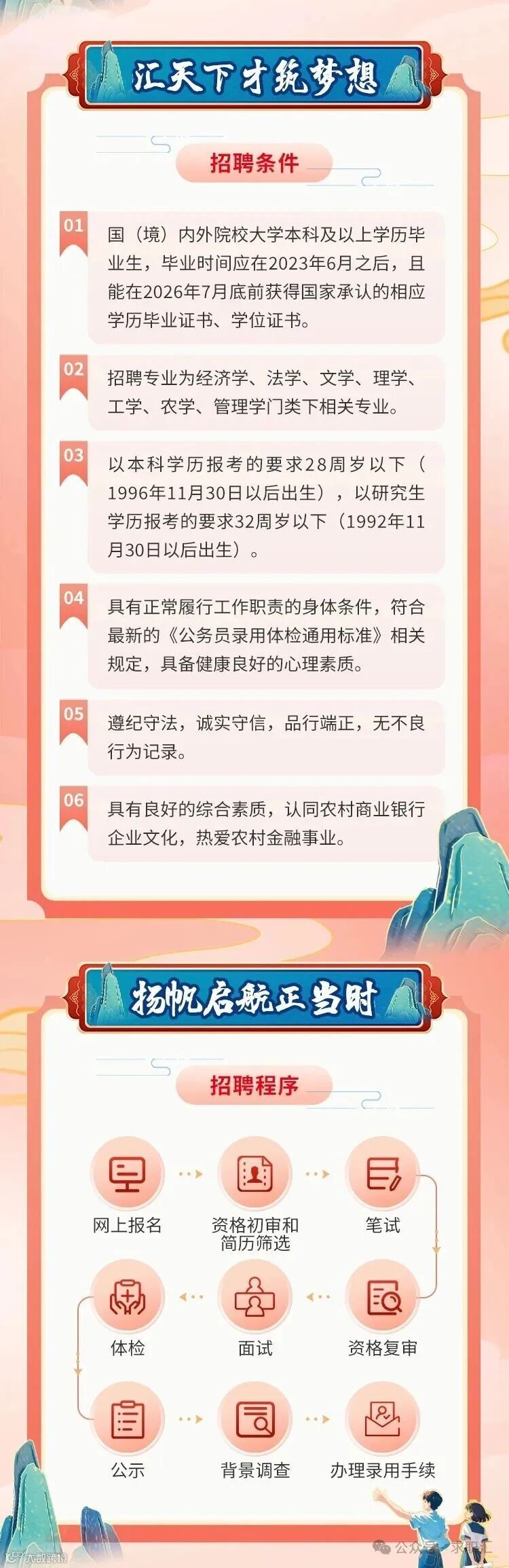 3.条件要求。具有较好的金融、科技素养,较强的数据分析和调查研究能力,能够利用专业能力提升银行核心竞争力。