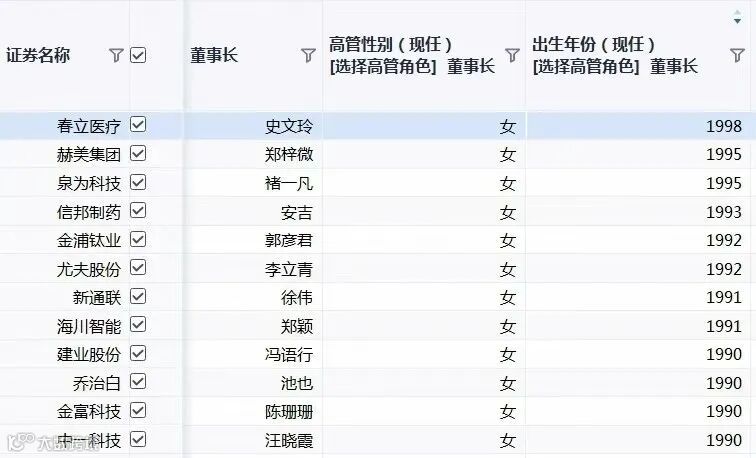 业绩做好年龄又小,如今,在A股上市公司中,90后的女董事长一共有12位,27岁的史文玲,是最年轻的一位。