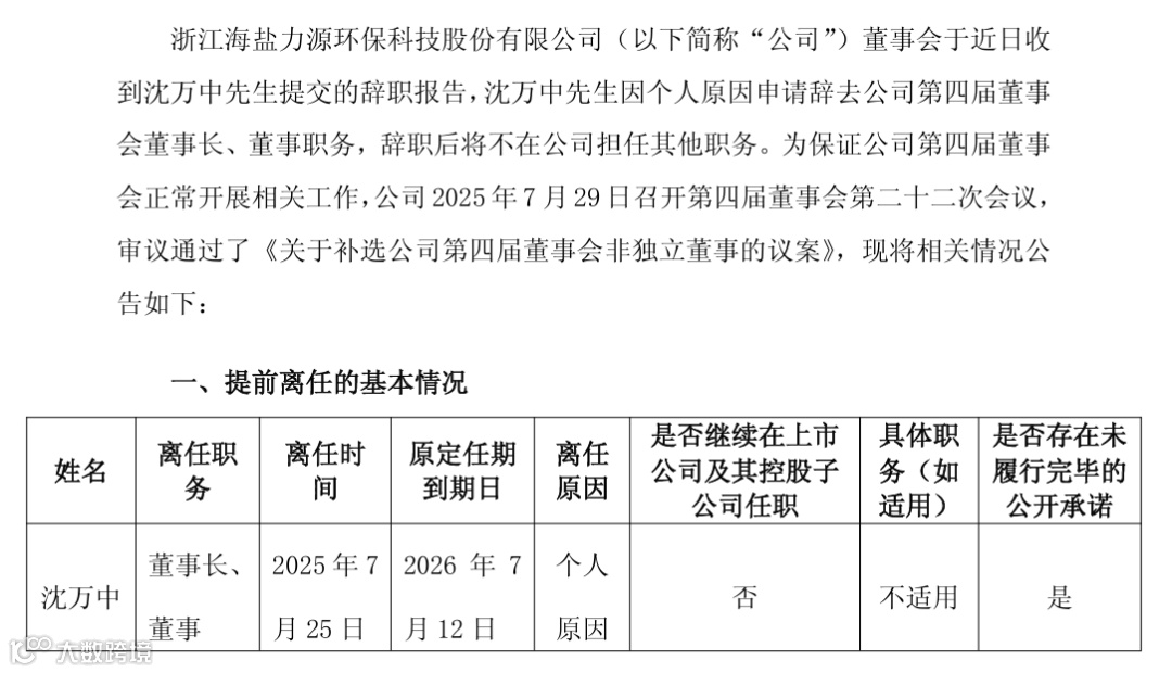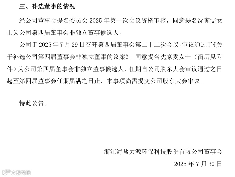 近日,科创板上市公司力源科技发布公告,董事长沈万中因个人原因申请辞职,同时,公司董事会已提名沈家雯为第四届董事会非独立董事候选人,任期自股东大会审议通过之日起至第四届董事会任期届满为止。