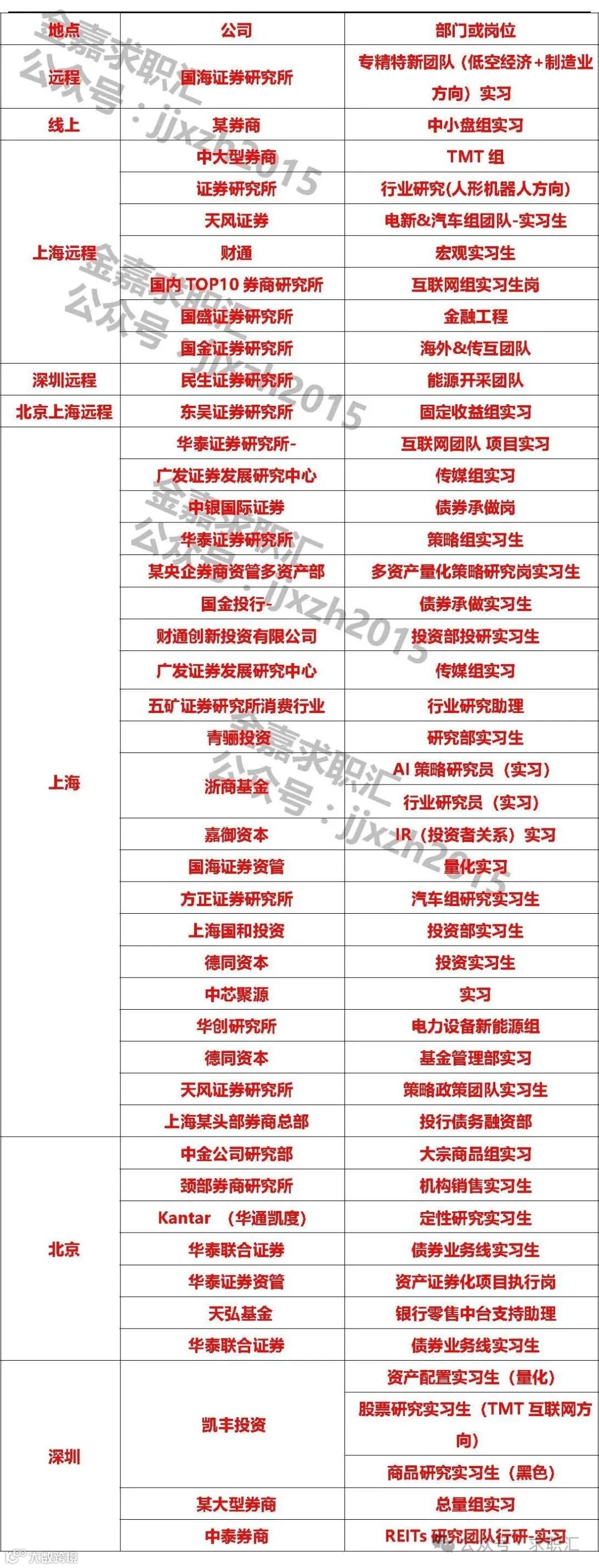 2、具备基金子公司、公募基金、证券公司、信托公司、银行等金融机构实习经验优先;