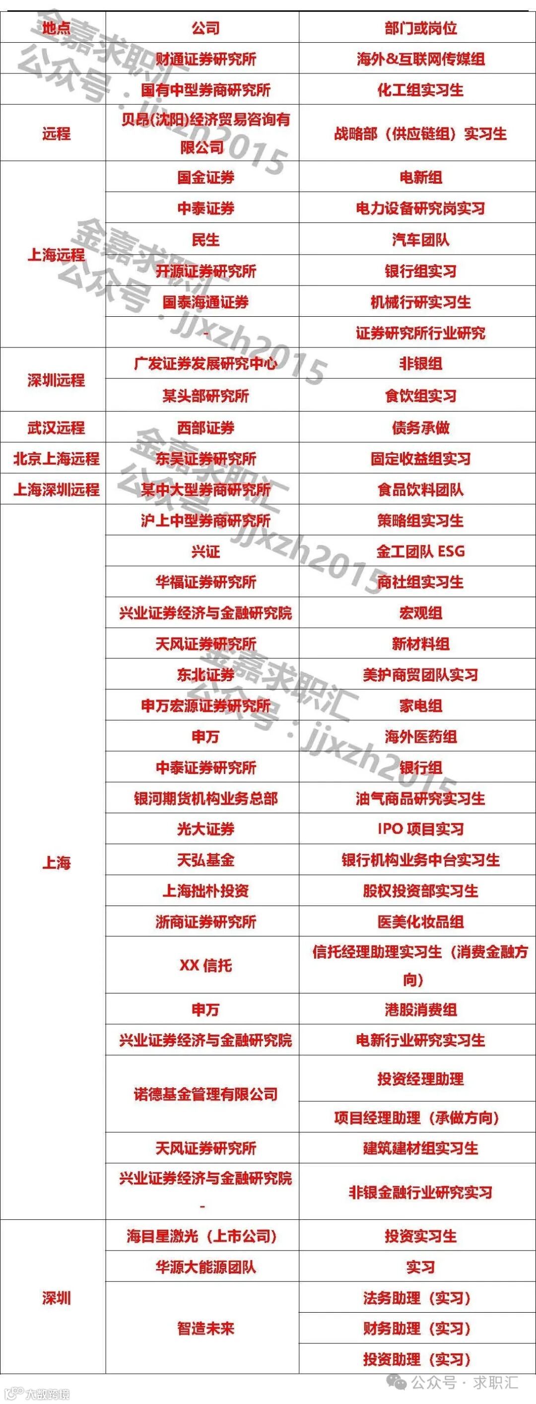 2、 对证券行业与行业研究工作有浓厚兴趣,了解卖方研究员的工作内容,有券商基金实习经验者优先