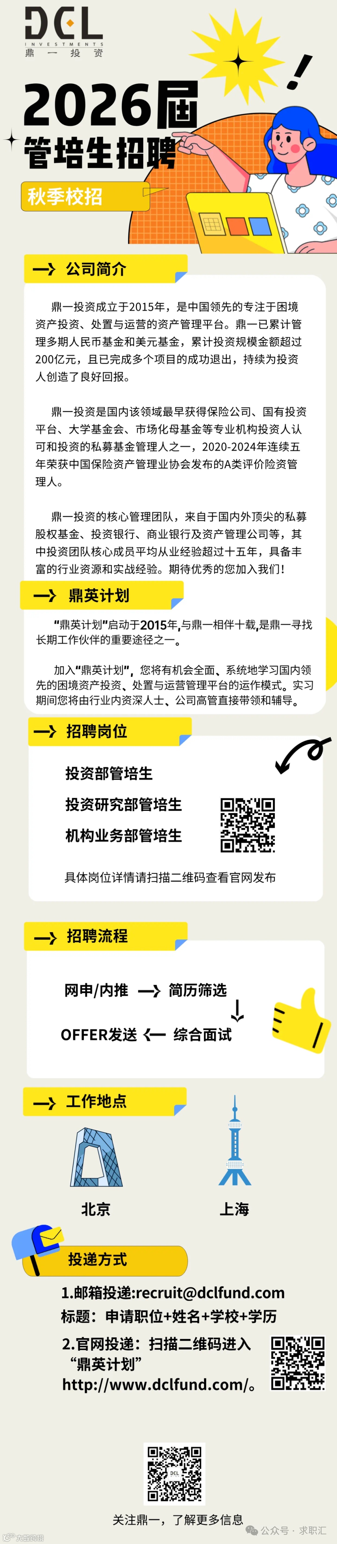招聘岗位三:投资助理(应届生可投),上海,2人