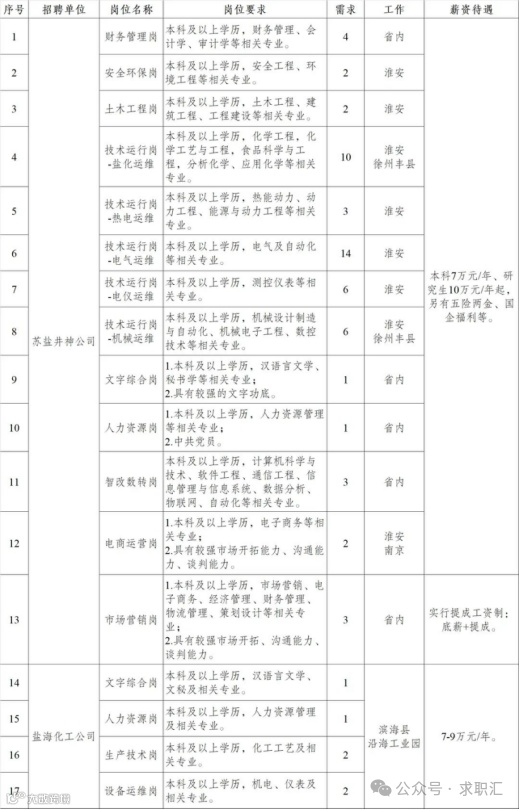 (二)苏盐集团所属企业招聘岗位(应届毕业生)