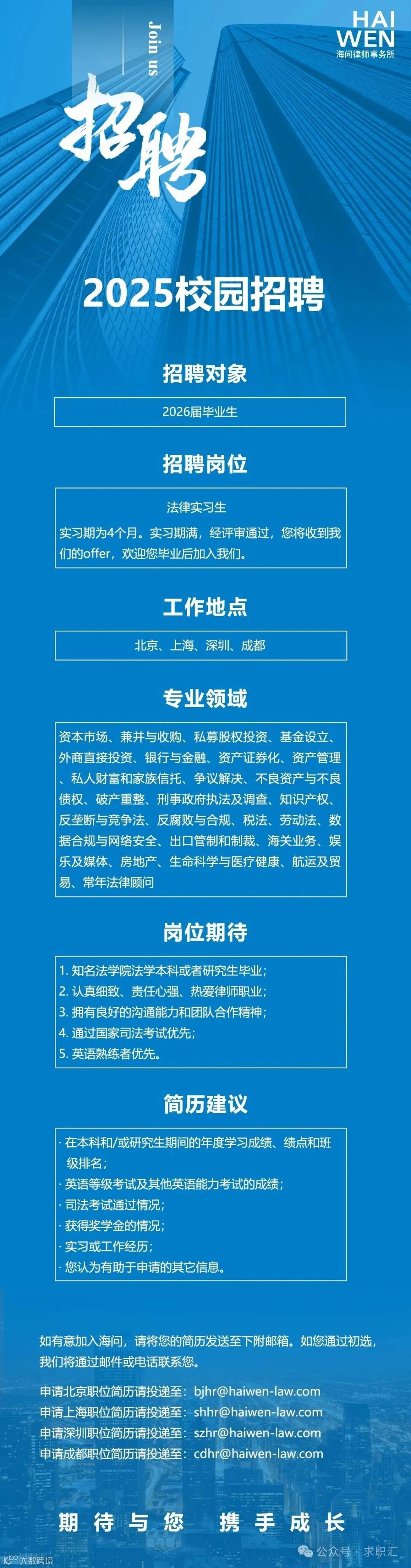 2025海问律师事务所校园招聘