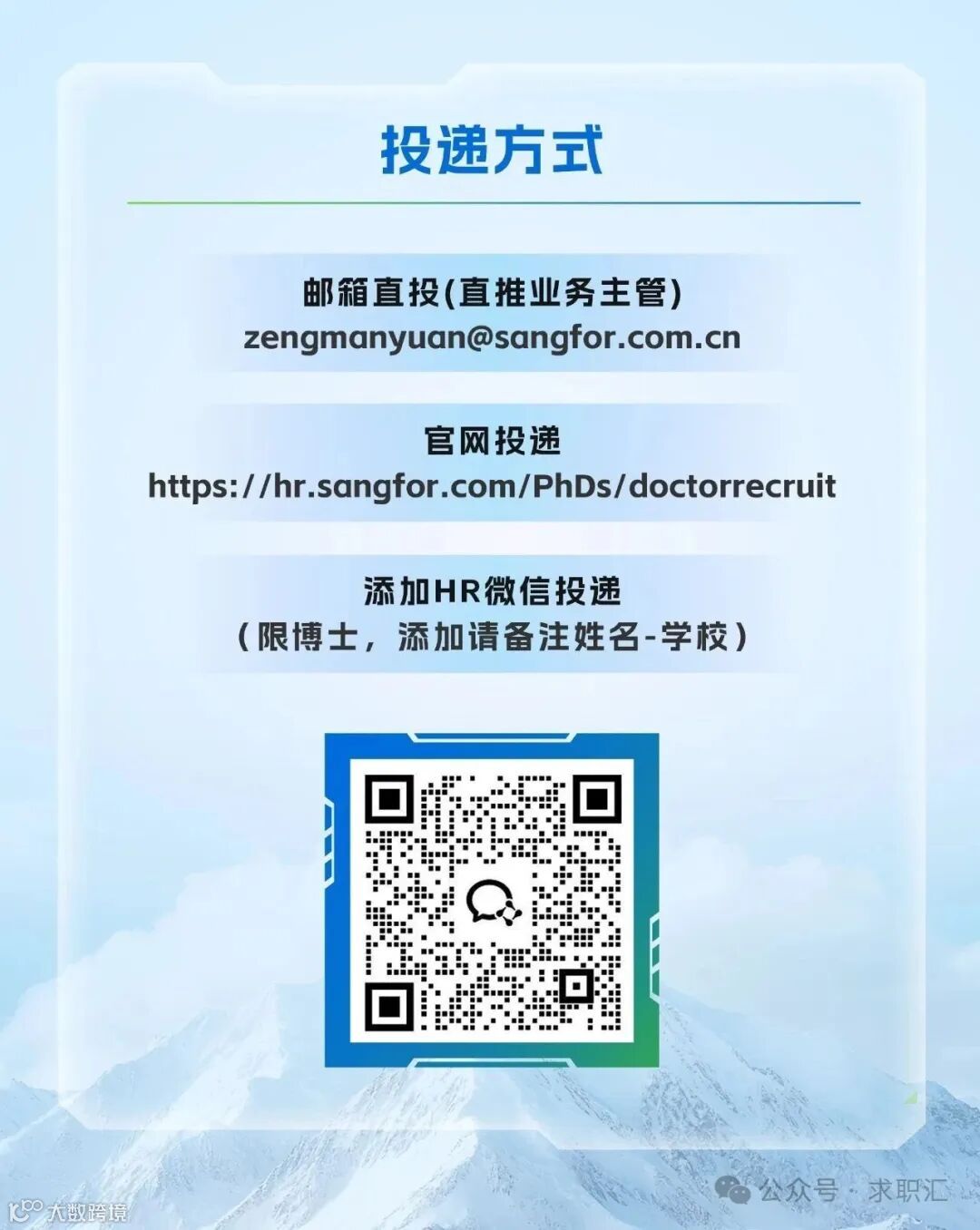 邮件名与文件名为姓名-本科学校-研究生学校-毕业年份-应聘岗位