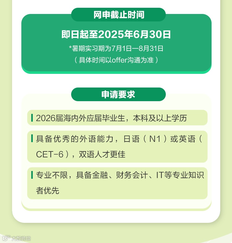 金融小伙伴致力于搭建一个金融垂直领域职业信息分享和交流公益平台,通过持续不断的公众号推文和线上线下活动,提供及时、全面、高效的行业招聘信息和职场提升经验。目前,我们已吸引了超过100万粉丝,在海内外金融学子和在职人士中均享有盛誉。