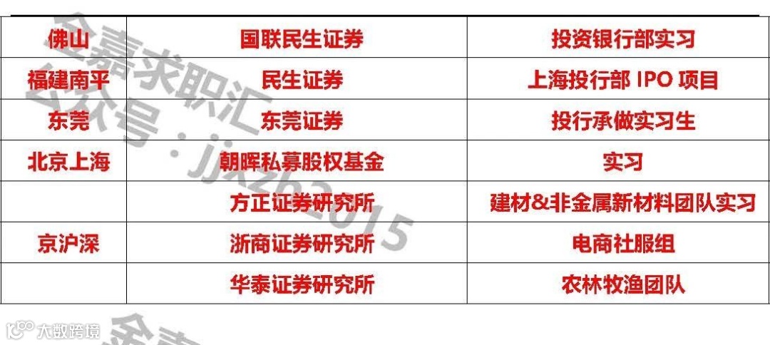 2、有券商研究所或基金实习经验优先;