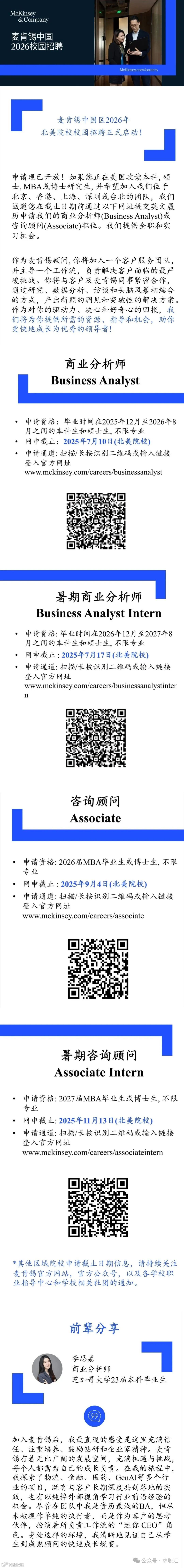 麦肯锡中国2026年北美院校校园招聘