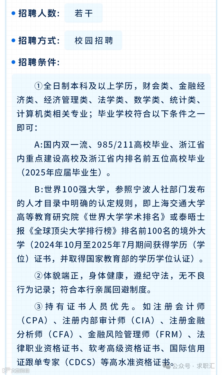 鄞州银行2025年招聘