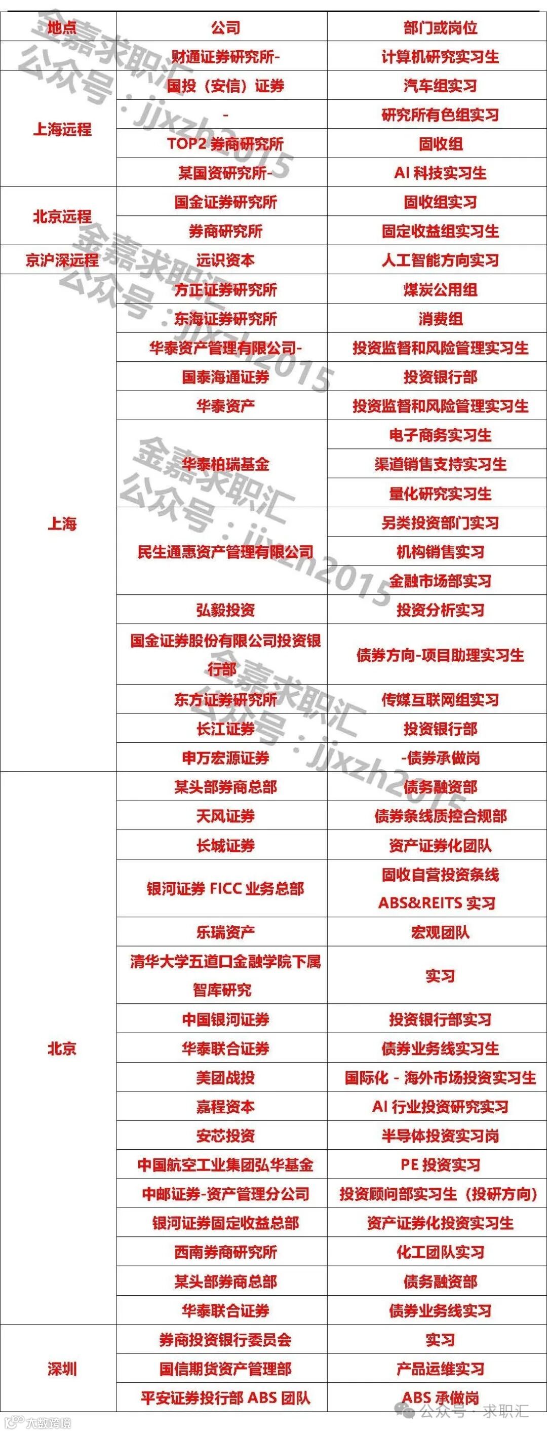 2、了解券商研究所,有买方、卖方研究实习经历者优先考虑;