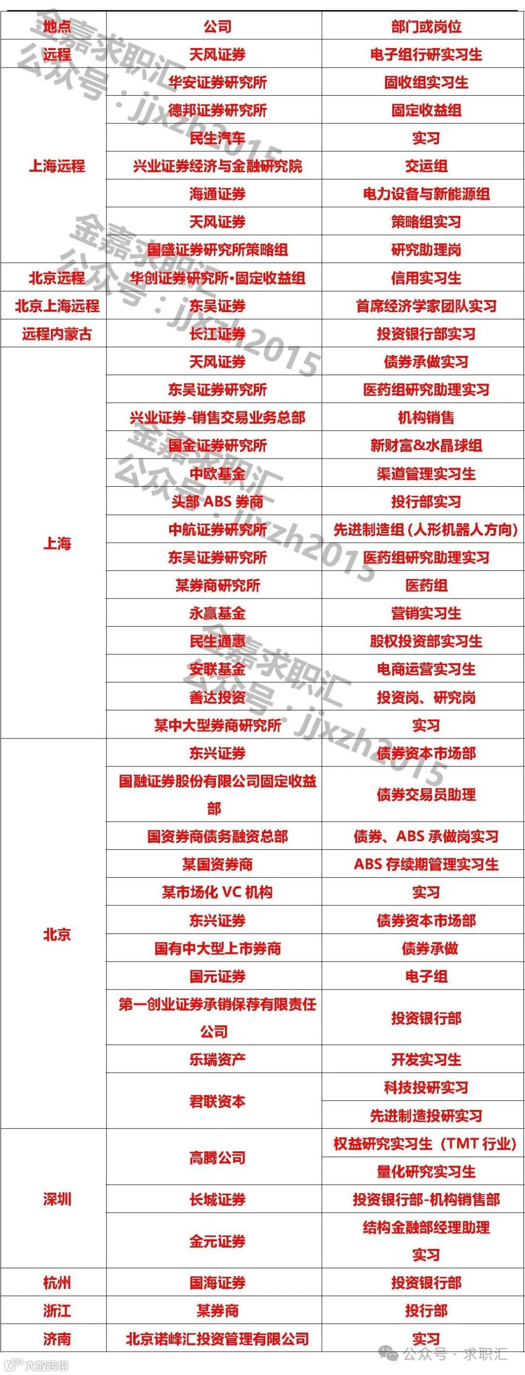 2、具备券商研究所3个月以上实习经验优先;