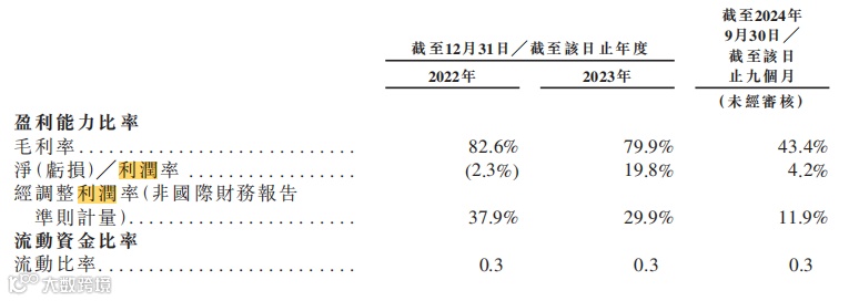 但同期,毛利率分别为82.6%、79.9%以及43.4%,经调整净利润率分别为37.9%、29.9%和11.9%,或许这家公司正面临着增收不增利的困境。