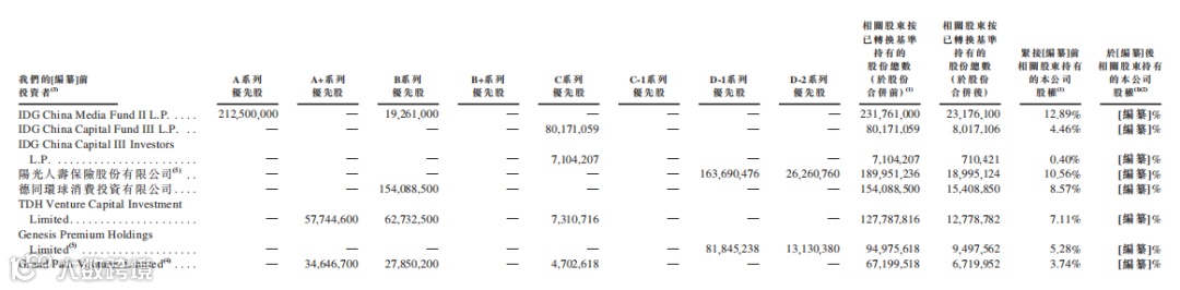 IPO前,IDG China Media Fund IIL持股为12.89%,IDG China Capital Fund III L.P持股为4.46%,IDG China Capital III Investors L.P持股为0.4%;阳光人寿保险股份有限公司持股为10.56%;德同环球消费投资有限公司持股为8.57%;腾讯旗下ChineseRose Investment持股为0.91%。