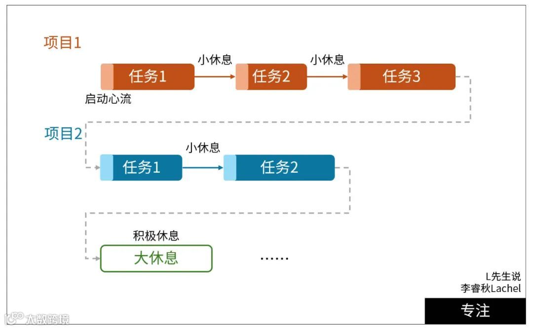 可能有人会有疑问:心流理论,不是告诉我们要尽量久地保持心流状态吗?这样反复冲刺和休息,不会打乱心流的节奏吗?